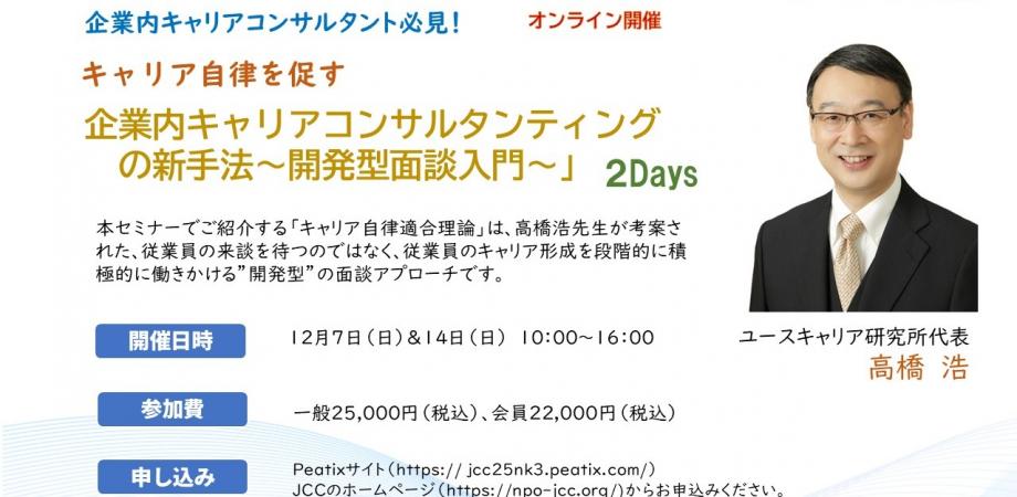 NPO法人SOCC第49回のセミナーは、法政⼤学キャリアデザイン学部教授の廣川 進先生にご登壇いただきます。去る11月22日に、日本キャリア・カウンセリング学会……
